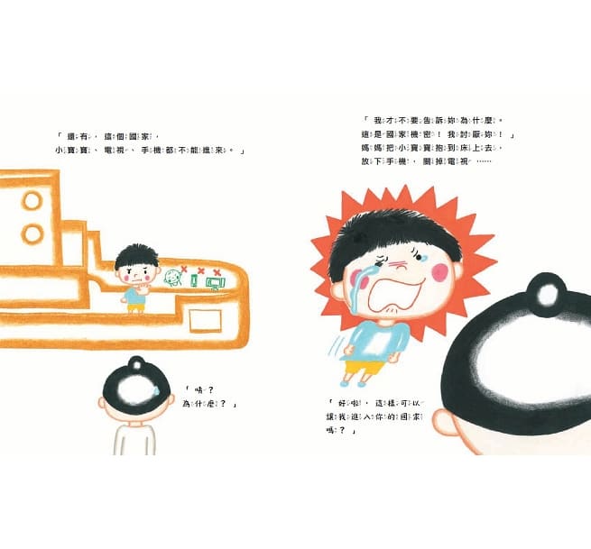 內容介紹: 爸爸媽媽比孩子心裡想的更愛孩子。 可是,「愛」需要說出來, 需要真的陪伴, 孩子和爸媽的心才會更近、更堅定。 寬寬做了一個厲害的積木車車,可是媽媽只顧著看手機,看電視,照顧小寶寶,忽略了寬寬。 寬寬用紙箱做了一個國家,一個不能帶手機進來的國家,只為了引起媽媽對自己的注意,甚至希望可以變成手機,這樣媽媽就能自己,得到關注。 寬寬令人心疼的是,他也能同理媽媽媽的辛苦,所以才委屈的想變成媽媽的手機,希望這個故事能讓爸爸媽媽放下手機,好好陪伴孩子,彼此的心更靠近,更堅定。