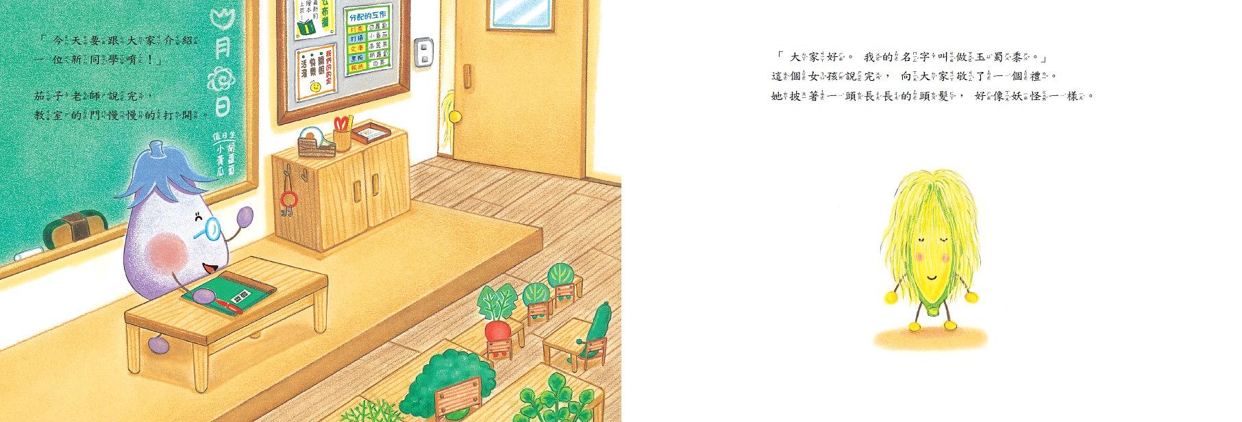 為了變成好吃的蔬菜, 小番茄、小黃瓜、小青椒、玉蜀黍……都到蔬菜學校上學。