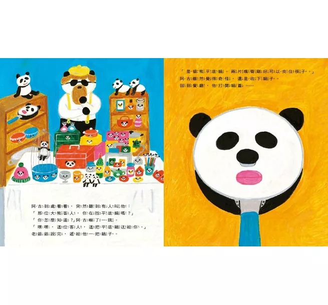 阿古回家打開鍋蓋一看,發現鍋裡有一個小貓熊。