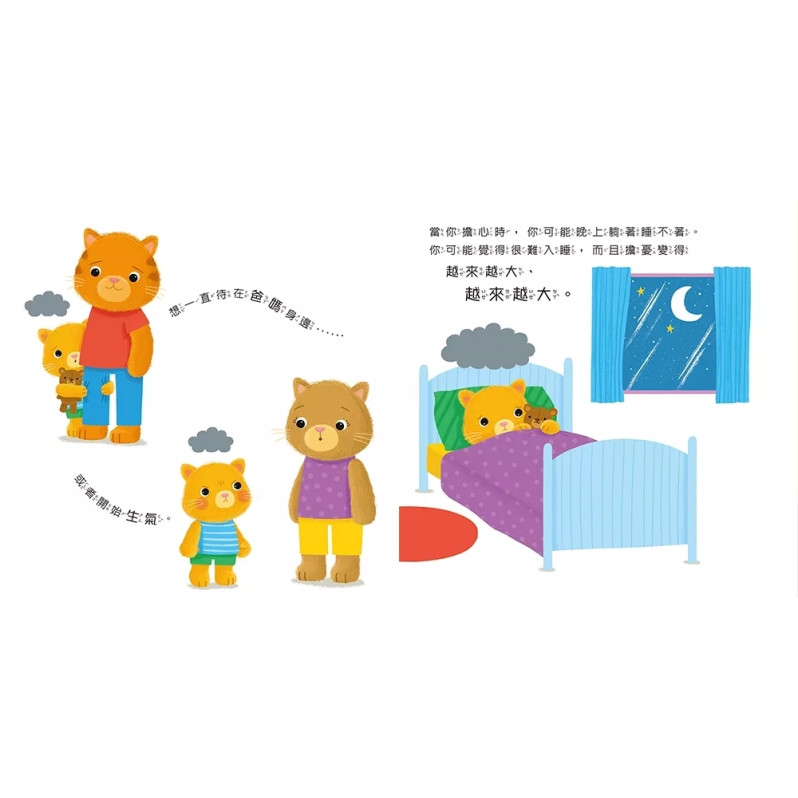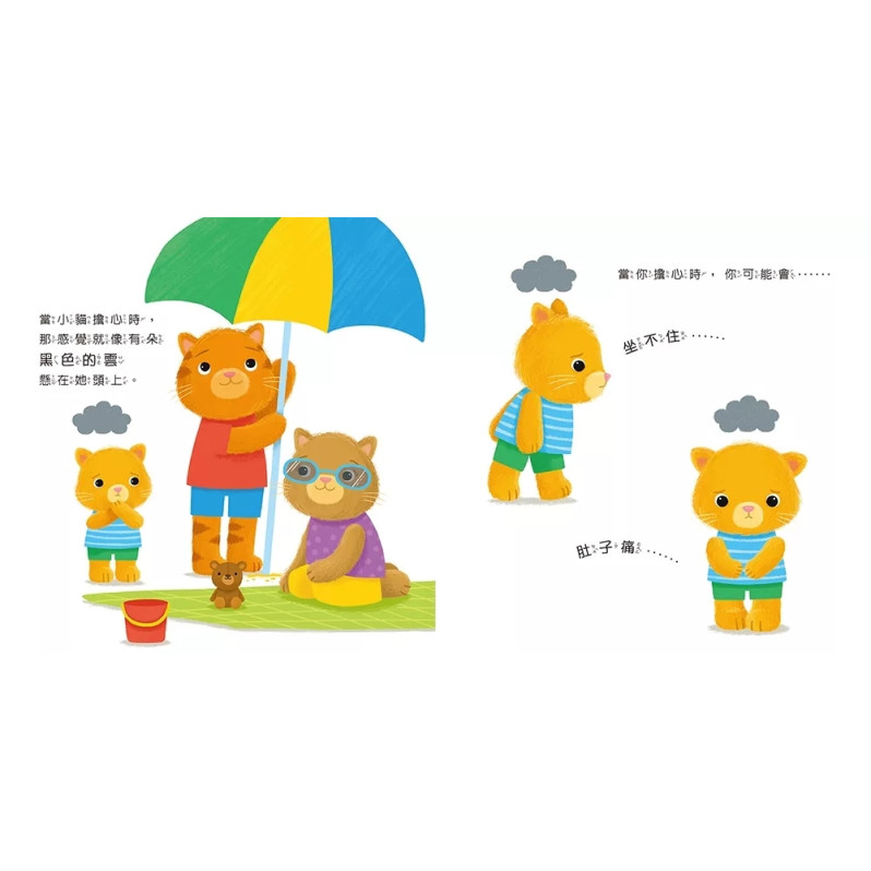 在小貓的溫柔陪伴下,孩子們學會察覺並正視自己的情緒,發現能讓自己感到安心的方法。書中的文字清晰且富有同理心,為年幼孩子提供了表達情緒所需的洞察力和詞彙,並鼓勵他們勇敢地說出內心的感受。