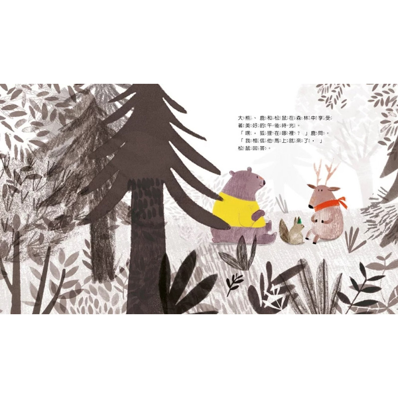 大熊、鹿和松鼠正在森林裡享受美好的下午時光,看見狐狸身穿藍色的衣服,就開始戴著主觀的有色眼鏡,以主觀的態度和想法,討論起顏色所代表的情緒。最後,聰明的狐狸給了結論:「當然!顏色是自由的!」