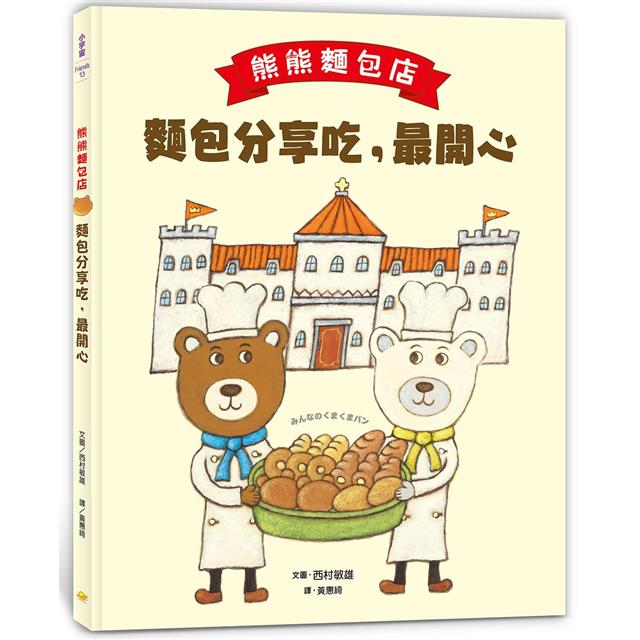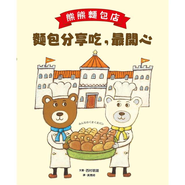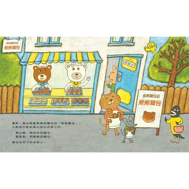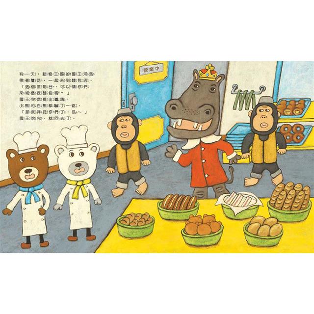 熊熊麵包店是一家非常受歡迎的麵包屋。有一天,河馬國王要求小熊和白熊到皇宮,為悶悶不樂的王子做麵包。小熊做了一個超~巨大的奶油麵包,白熊做了一個超~極長的熱狗麵包,連國王都捲起袖子幫忙揉麵團、擠奶油,但是王子怎麼樣都不肯吃。