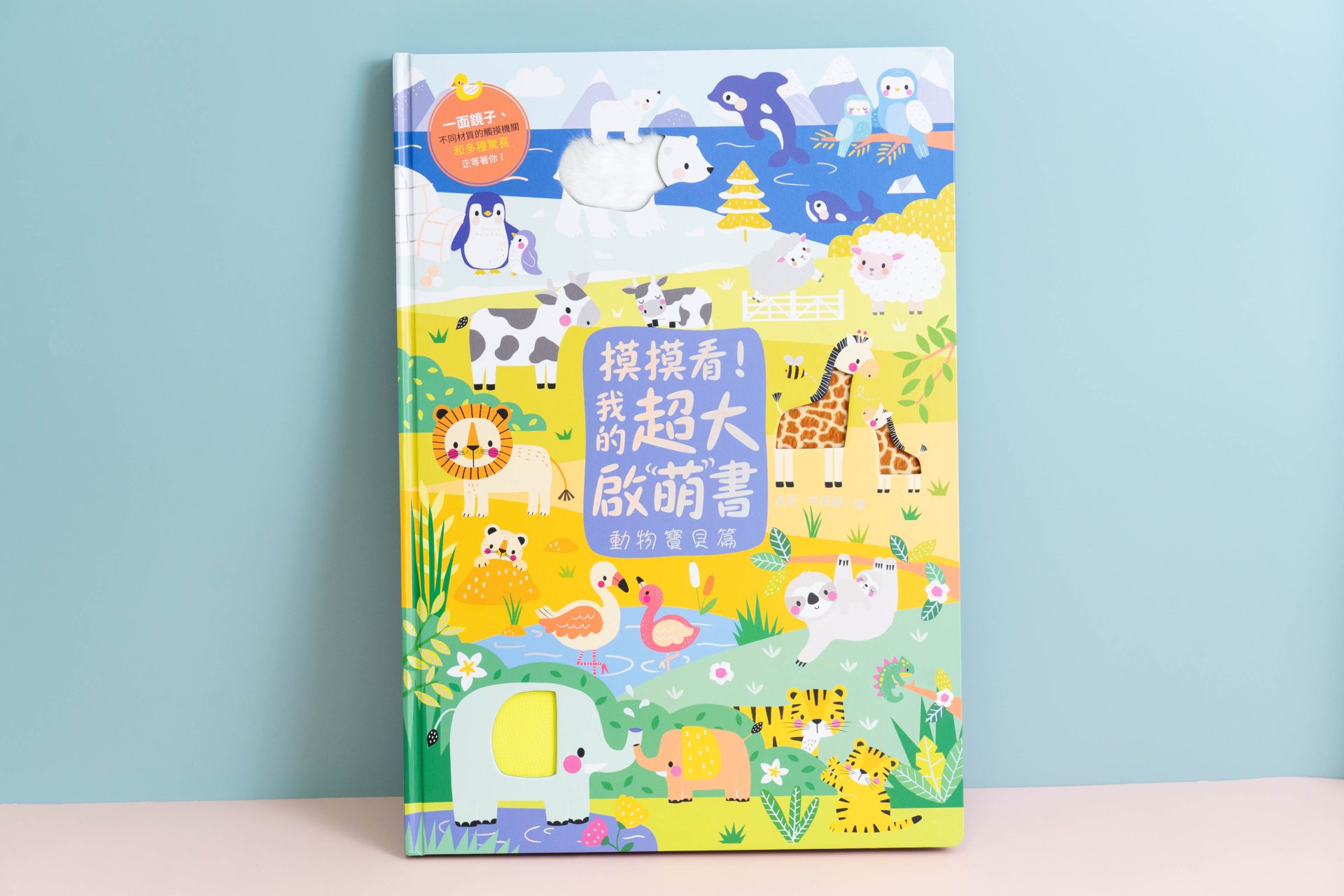 每一頁都有三種特殊材質,書裡還有一面鏡子,以及許許多多的驚喜,等待小小孩來探索。
