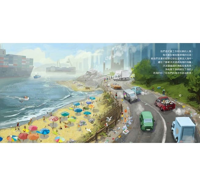 ※書末附「海洋汙染和行動呼籲」單元,對應書中每個畫面中的海洋汙染詳細解說,以及呼籲採取哪些行動來改善環境,最後以世界地圖,圖解五大主要海洋垃圾帶的地理位置。