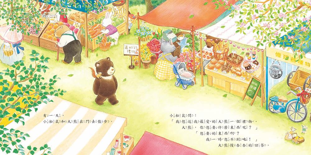 一天, 小松鼠想送禮物給最喜歡的大熊,