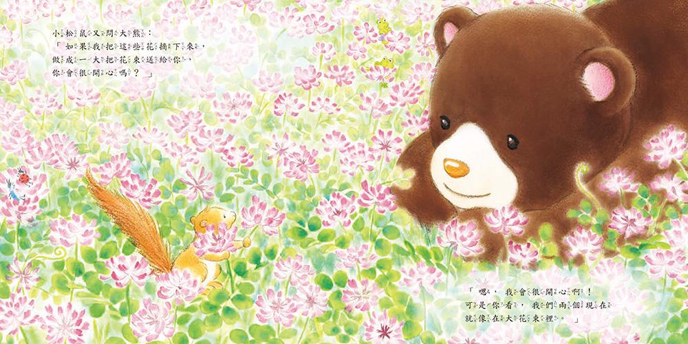 可是為什麼小松鼠一開始不明白,堅持要送個「實質」的禮物給大熊呢?因為他太在乎、太喜歡大熊了,以為必須用一個看得見的禮物,才能表達自己的心意。
