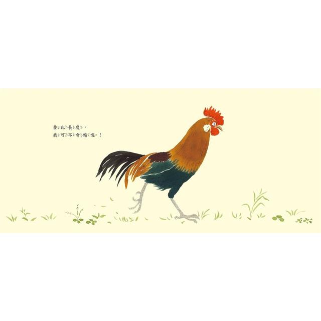 從外表看不出來哪裡比較長的公雞也驕傲的說:「要比長,我可不會輸!」
