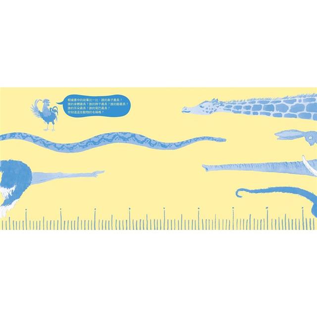 《比一比,誰最長?》就是以此概念創作的有趣繪本,它帶領幼兒在閱讀的過程中認識每種動物的「長」處,同時提醒小讀者在欣賞別人的優點之餘,也不需要妄自菲薄,因為每個人都有獨一無二的特長!