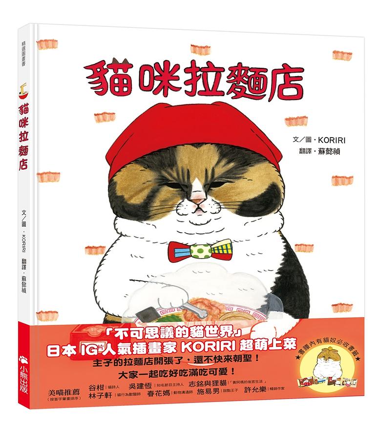 《貓咪拉麵店》是日本IG人氣插畫家KORIRI繼《貓咪西餐廳》後推出的美食系療癒繪本,並且邀請「不可思議的貓世界」中的瑪歐來擔任拉麵店店長。書中呈現出有如人類一般的活靈活現貓世界,將人氣拉麵店瑪歐店長的日本職喵精神展露無遺,從用料、備料到料理時的各種逗趣細節,以及與客喵們的互動,一窺貓咪世界裡的人氣排隊餐廳日常,各種擄掠客人的巧思,處處可見作者埋下的巧妙伏筆,貫穿全書、具有畫龍點睛笑點的各種張貼告示、廣告和菜單細節,不論你是不是貓奴,一定會被這碗職喵拉麵勾撩得飢腸轆轆,卻又因這樣可愛的情境和美味的想像而倍覺暖心!