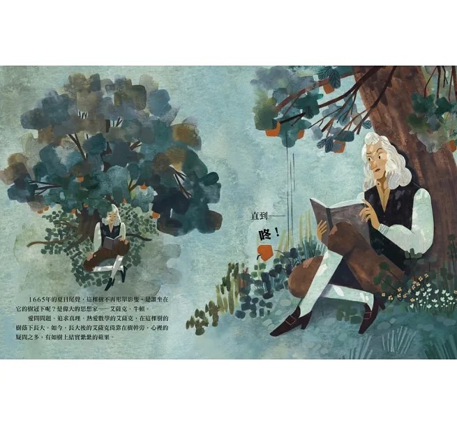 坐在樹下的人正是偉大的思想家──艾薩克‧牛頓。