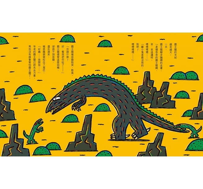 很久、很久以前,恐龍群中有隻力量最強的恐龍,大家都稱他為霸王龍。每次一看到霸王龍,大家就趕緊逃命去了,甚至只要聽到他的聲音,便全身發抖地找地方躲起來。然而,隨著時間流逝,霸王龍的年紀越來越大……霸王龍開始被其他的惡龍欺負,即使想要反擊,也打不過對方。年老的霸王龍已經失去力量,沒有人會害怕他了。