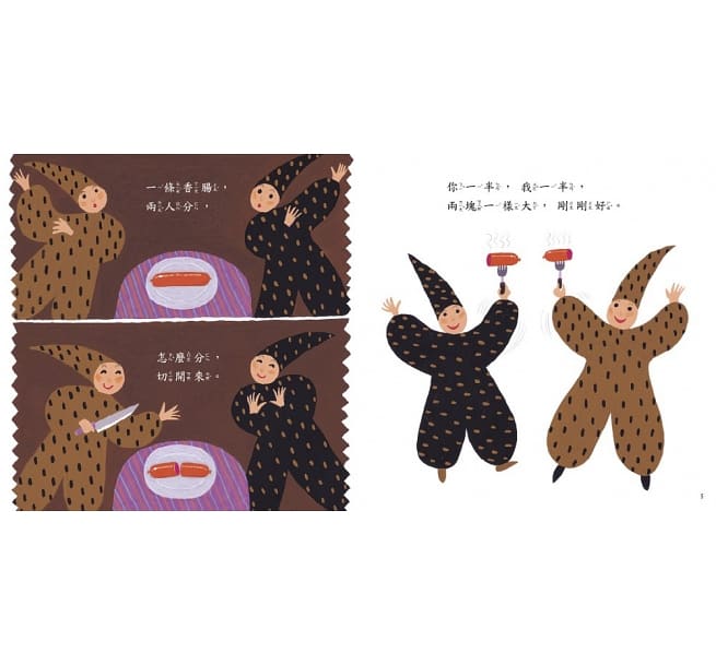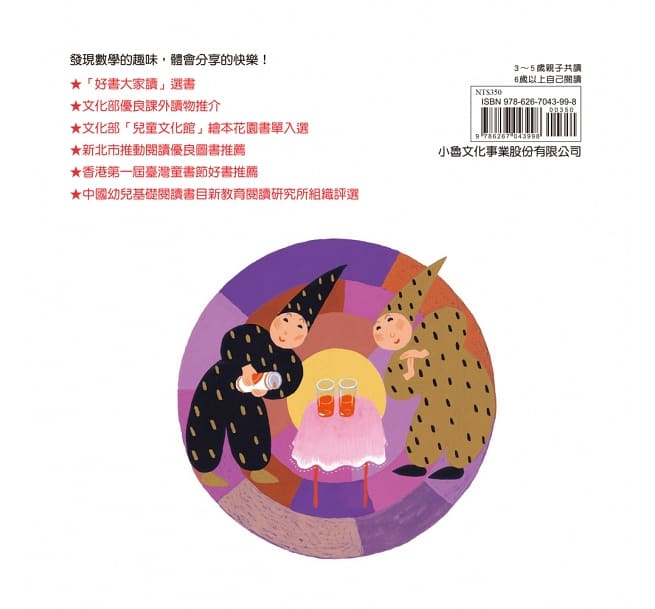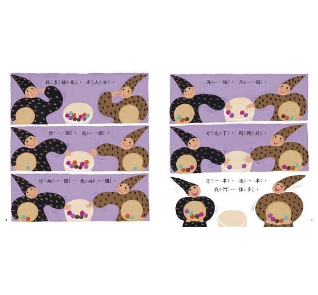 本書運用日常生活中常見的事物,讓小朋友對「分數」有初步的概念,同時也讓孩子體會到「公平分配」之外,有時也能享受「分享」的快樂。