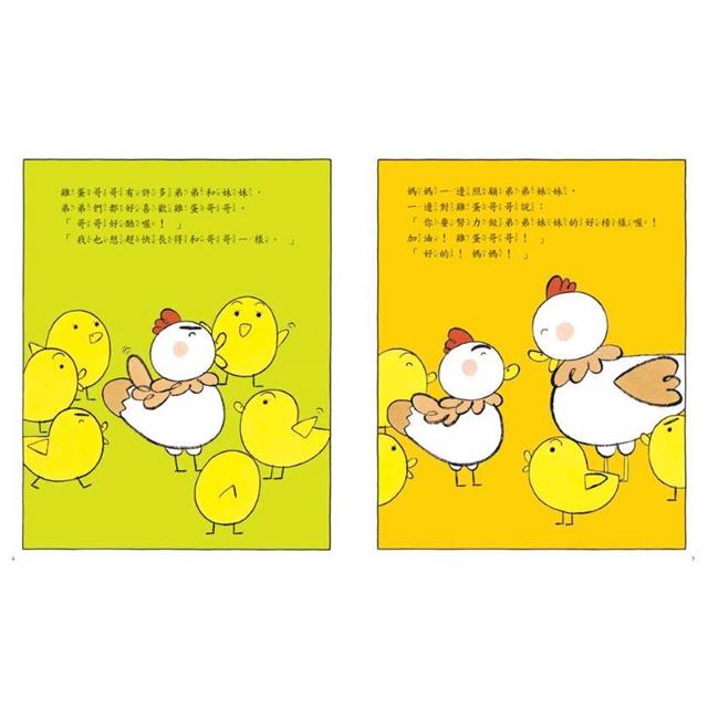《加油!雞蛋哥哥》內容逗趣十足、幽默依舊。簡潔但充滿戲劇張力的畫面,生動地描繪了成長的複雜心情。讓父母體會孩子突然出現的低潮,也讓孩子發現自己成長的動力和無限可能!