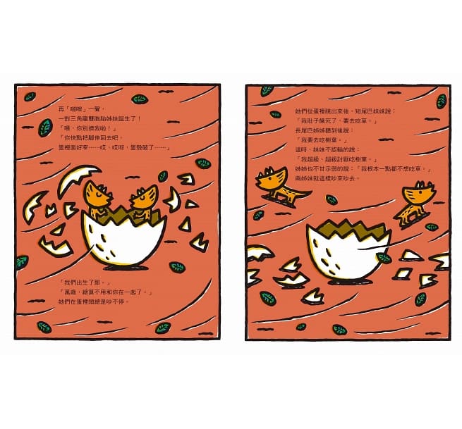 「我還想和你們兩個一起吃紅果子呀……」當遇上火山爆發時,霸王龍讓自己變成一座橋,只為保護三角龍姊妹平安越過懸崖。