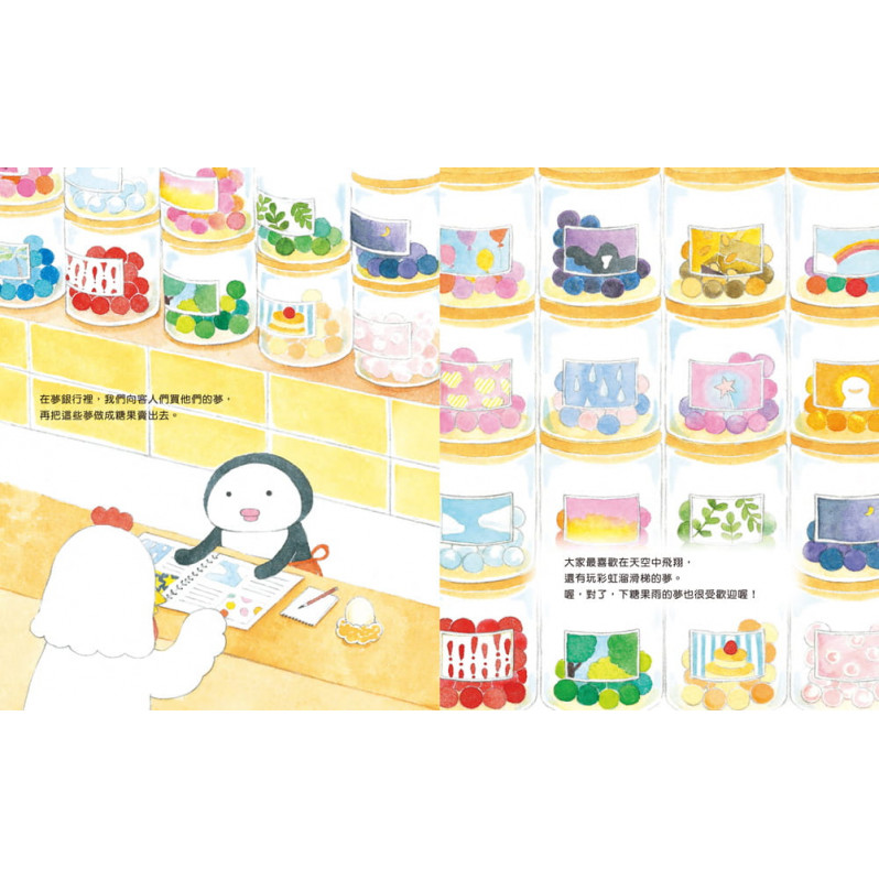 本店由害怕惡夢的膽小鬼店主貝貝、能夠吃下各種夢境的捕夢好幫手貘貘聯手經營,在夢銀行裡,各種美夢與惡夢應有盡有。