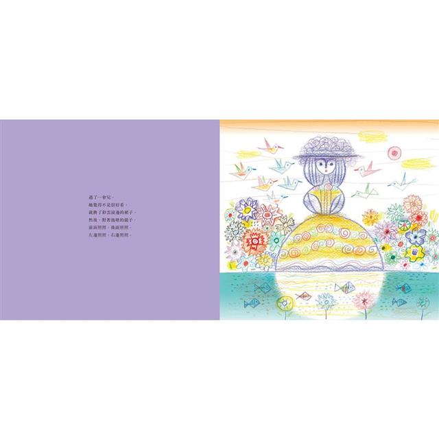 藉由天空從早到晚一整天的服裝挑選,孩子可以從中認識到各式各樣形象化的天空樣貌,像是白雲長袍、彩雲滾邊裙、彩虹旗袍等。