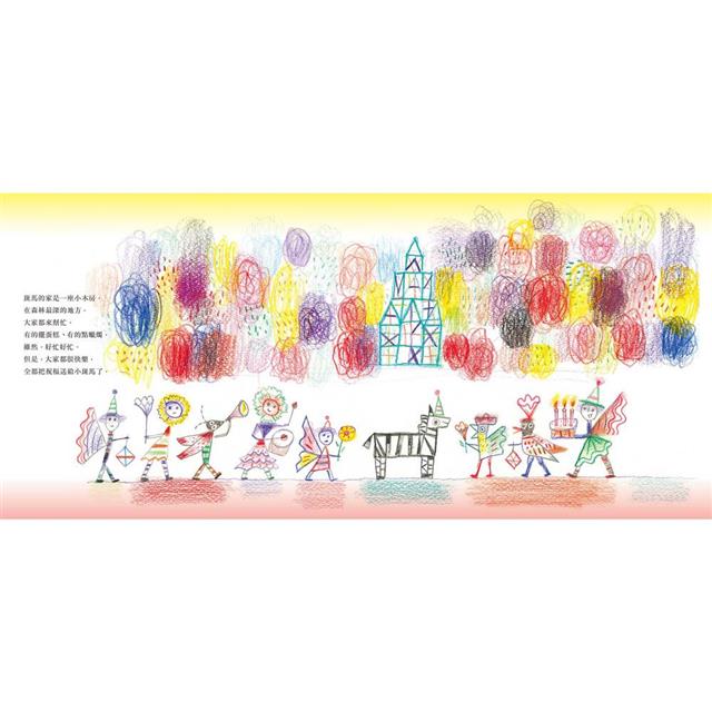 一翻開書,便可看見像孩童塗鴉般簡單的線條,與不經精密計算的著色,讓人雙眼為之一亮的插畫,更是為本書錦上添花,與孩子更容易產生共鳴。