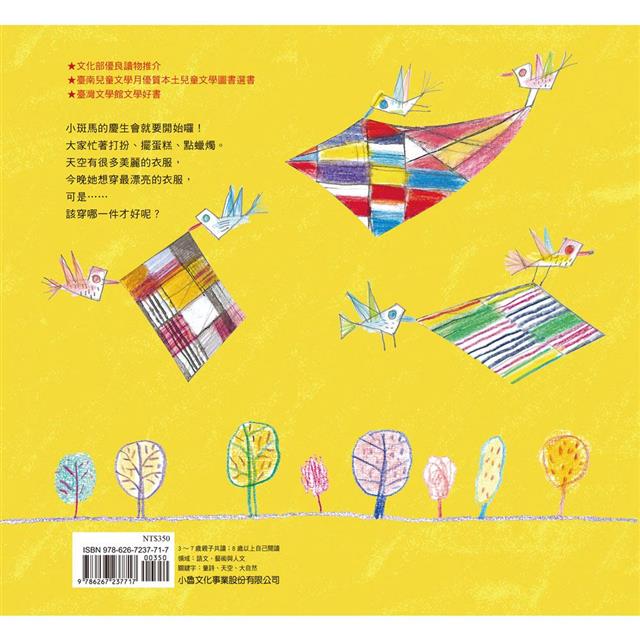 《天空的衣服》這首童詩,作者謝武彰老師以較長篇幅的方式呈現夜晚的美麗與熱鬧,擬人化的手法,讓整首童詩活潑且生動,讀者不但可以從字裡行間裡體會出大自然變化的奧妙,更可以欣賞趙國宗老師充滿童真的繪畫,兩者互相輝映,使這本書充滿了想像力與趣味性。快一起來幫天空挑選晚宴的衣服吧!