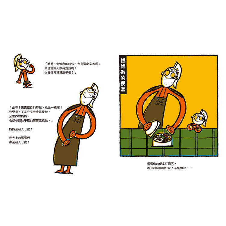 超人七號媽媽的母愛物語!媽媽懷孕時雖然辛苦,仍然每天溫柔地對肚子裡的寶寶說話;即使時間很趕,也能迅速變出美味的便當;偶爾會難過地偷哭,但很快就會重拾笑容。因為對媽媽來說,家人健康快樂、感情和睦,就是她最珍貴的幸福。
