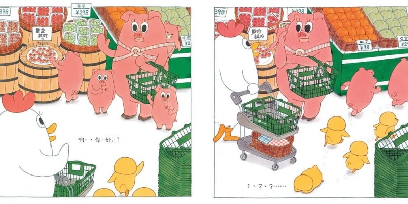 本書以親子一起去超市採購為主題,從一開始就充滿歡樂的氣氛,跟著小雞一家先來看看逛超市會遇到的事吧!
