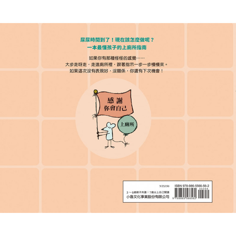 關於上廁所這件事,你是不是不知道該怎麼做呢?沒關係,書中每一頁可愛的小老鼠會給你明確的指示,他們舉著標語,告訴你所有尿尿前後應該做的步驟,當你走進廁所裡,他們甚至還幫你鋪紅毯,大大地歡迎你。