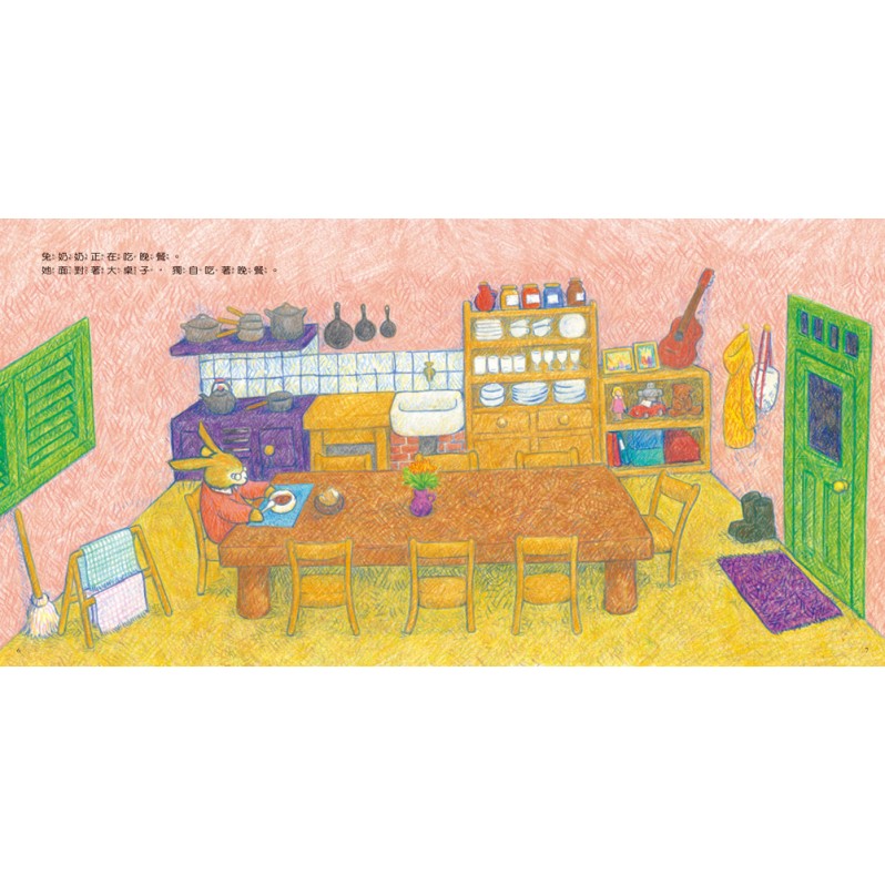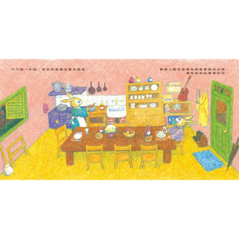 剩下充滿回憶的大桌子陪伴著兔奶奶……