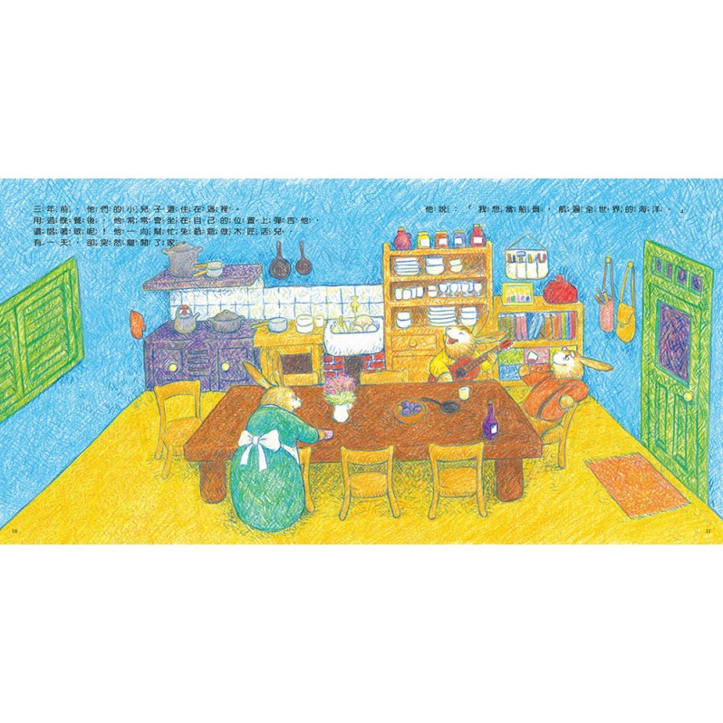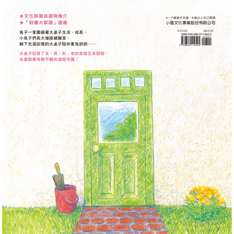 每個家庭都有它的家庭歷史。兔子一家的家庭歷史以廚房那張由兔子老爺爺親手釘造的大桌子為中心:小兔子圍繞著它吃飯、遊戲、做功課,還在大桌子底下塗鴉。孩子成長後分散各地,但代表家庭歷史的大桌子仍然牽繫著大家,也成了大家活得更好的動力……