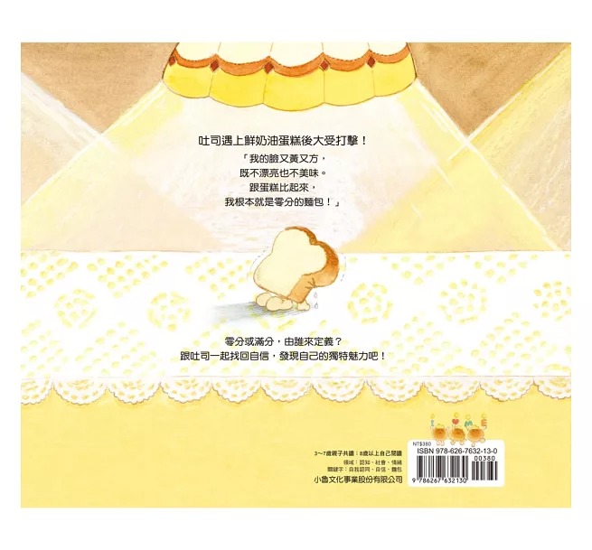 麵包角色的互動也是故事一大亮點,從相互比較、安慰、鼓勵的情節,讓孩子體會尊重、包容多樣性的重要,也學習如何給予朋友真誠的關懷與讚美!