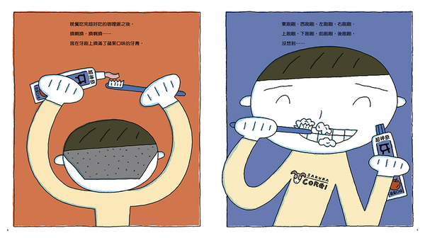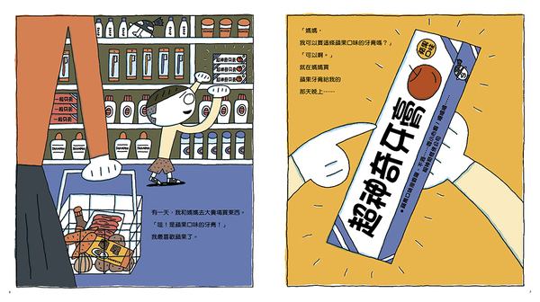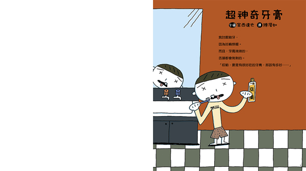 內容介紹: 宮西達也超無厘頭的超神奇刷牙繪本! 快樂的刷牙時間不再是夢想! 刷牙好討厭,牙膏都好辣,要是有很好吃的牙膏,那該有多好…… 這些煩惱就交給超神奇怪俠吧! 有了超神奇牙膏, 快樂的刷牙時間不再是夢想! 蘋果、香蕉、蛋糕……各種口味的超神奇牙膏,即日起限量發售! 一起來體驗超好吃、超有趣、超神奇的刷牙時間! 只是要小心超神奇的副作用喔,嘻嘻嘻……