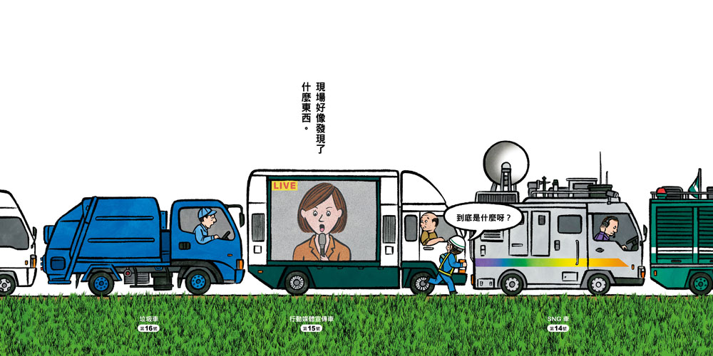 內容介紹: ◎ 超人氣《到底在排什麼呢?》系列第二彈 ◎ 小車迷必備!最豐富、最可愛的車子小百科。 ◎ 驚喜大拉頁,猜猜看、拉拉看,為什麼會大塞車? 為您插播一則新聞:「約50臺的車子堵在路上,造成了超級大塞車。」 到底發生了什麼事呢?讓我們尾隨塞車車陣逐一探訪! 三輪車、獨輪車、重型機車、動物遊園巴士…… 各種意想不到的車,逐一登場! 大村知子繼超人氣《到底在排什麼呢?》後,最新排隊繪本。