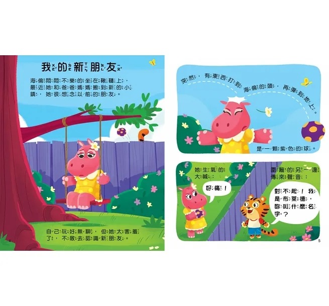 海倫搬新家了,她很想念以前的朋友,自己玩好無聊,但她太害羞了,不敢去認識新朋友。打開書本看一看,海倫如何交到新朋友,快樂成長!