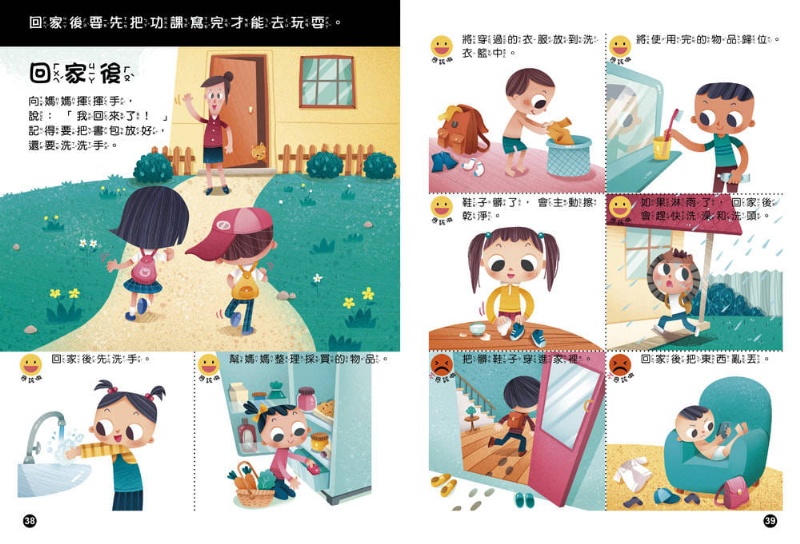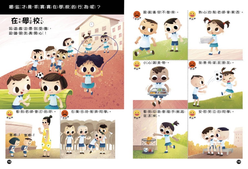 ★趣味吸睛插圖X哭臉及笑臉的設計X淺顯易懂的文字說明,讓孩子也能自己學會分辨行為的對錯
