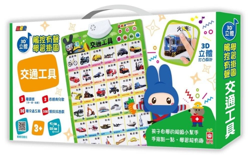 立體打凸設計,手指點一點,摸一摸,學習變得更有趣,真正貼近生活的情境式學習,超有趣的互動問答玩中學!只要用手指輕輕一點,不用播放CD、不用點讀筆,讓學習輕鬆成為生活的一部分!「腦、口、眼、耳、手」的五感學習,不只抓住孩子的注意力,同時提升學習力!精美立體插圖搭配有聲點讀,讓孩子眼看、耳聽同步,並配合互動找找遊戲,每天反覆聽、看、玩,提升孩子對學習的興趣!