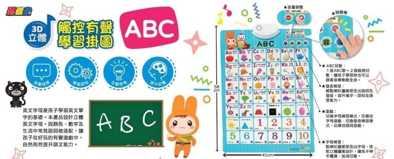 ● 找一找複習遊戲 ● 1首ABC歌+2首經典兒歌 ● 立體圖形打凸設計