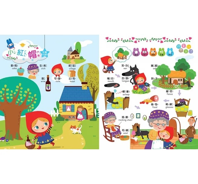 拇指姑娘、醜小鴨、小紅帽……13個耳熟能詳的童話故事,超過200個以上的語詞,採用圖像學習方式,輕鬆提高語詞知識。