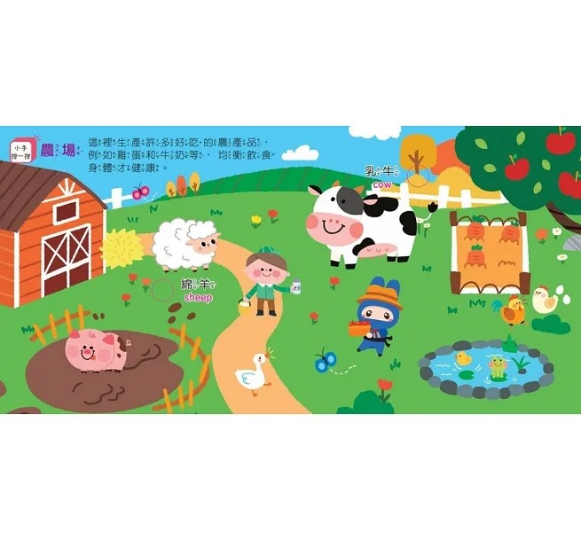 ★爸媽不需要透過播放器或掃QR Code,只要手指按一按,真實音效隨點隨放!對於熱愛操作遊戲書的孩子們,透過自己按按鍵也能感受玩中學的樂趣呢!