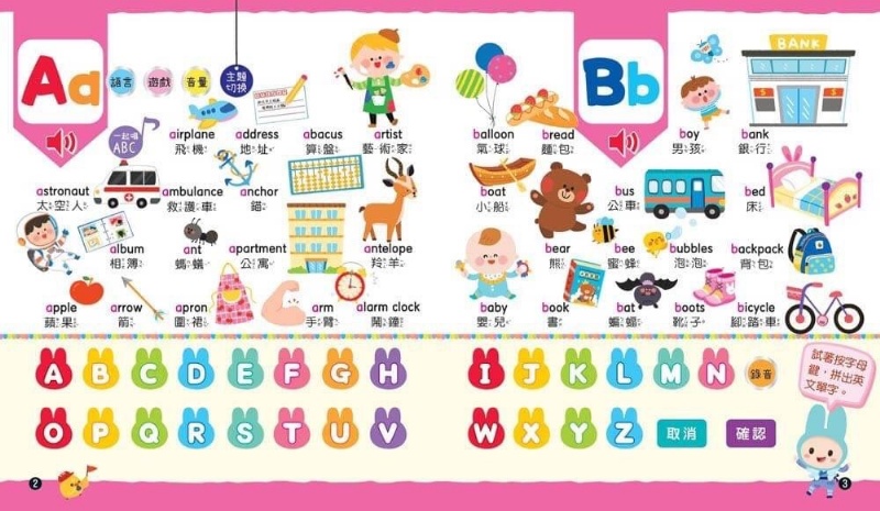 單字拼讀 x 三種語言 x 找找遊戲 x 字母歌謠 x 錄音覆誦
