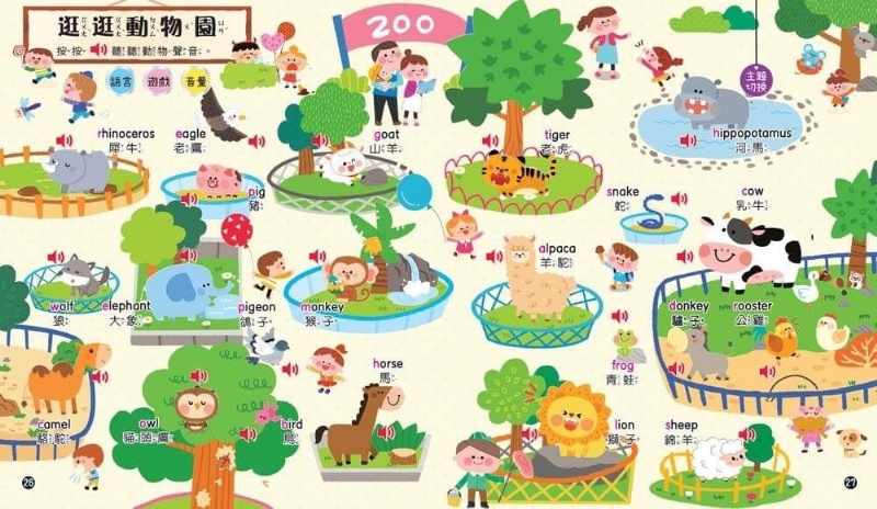 除了多種好玩遊戲外,還能參觀動物園,按按喇叭音效,聽聽看牠們的叫聲吧!