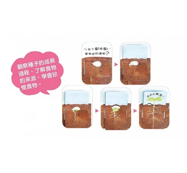 ★讓透過動手操作機關的過程中,讓孩子觀察種子的成長過程、認識均衡營養的重要性、了解如何烹飪等,是適合學前孩子認識飲食教育的入門操作遊戲書。