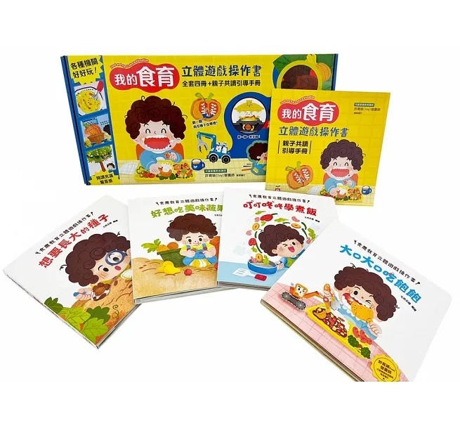4本遊戲操作書、1本親子共讀引讀手冊、扮家家酒遊戲紙卡