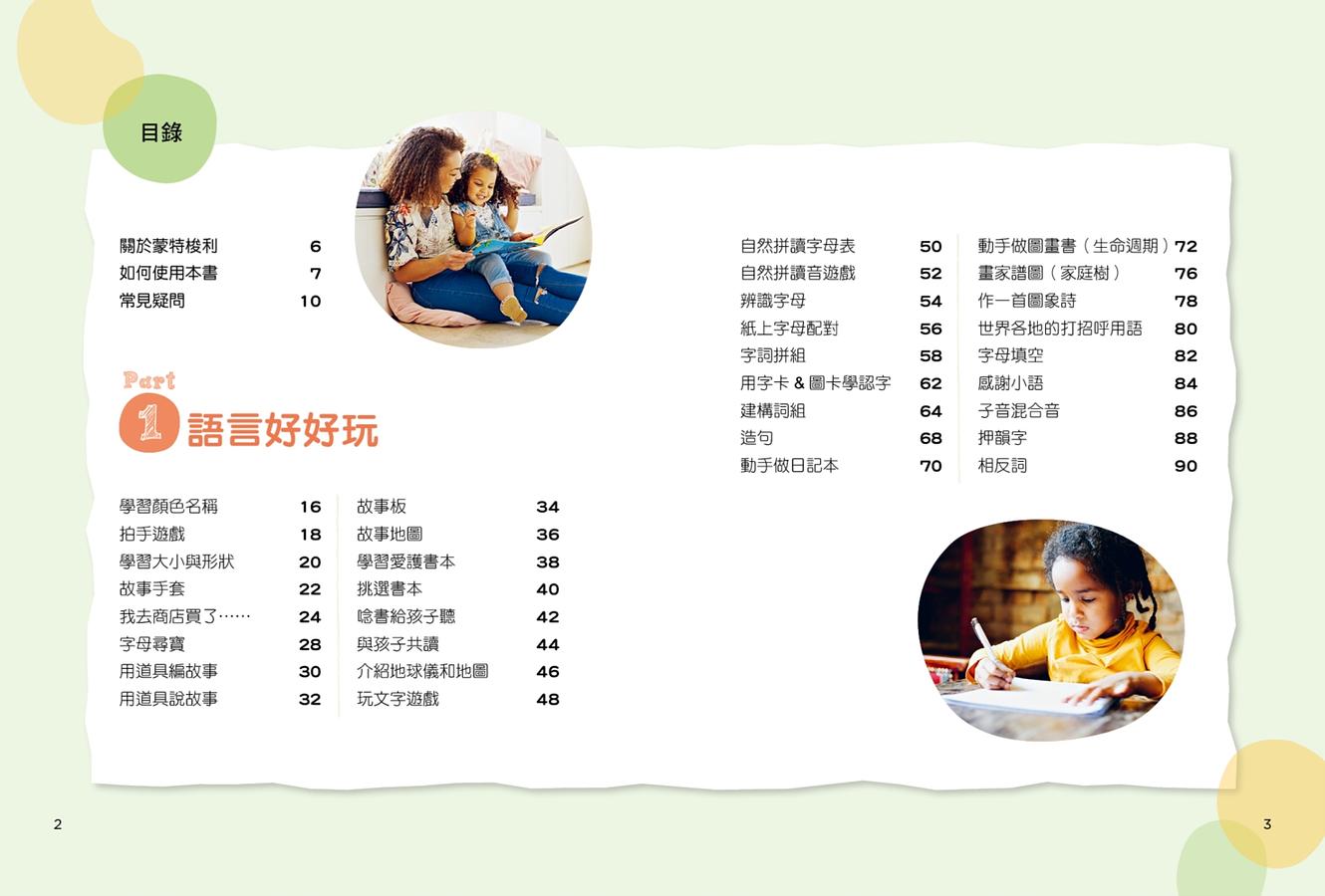 .針對沒有專業知識背景的父母親所設計的蒙特梭利遊戲,在家也可以充滿信心的與孩子一起進行。