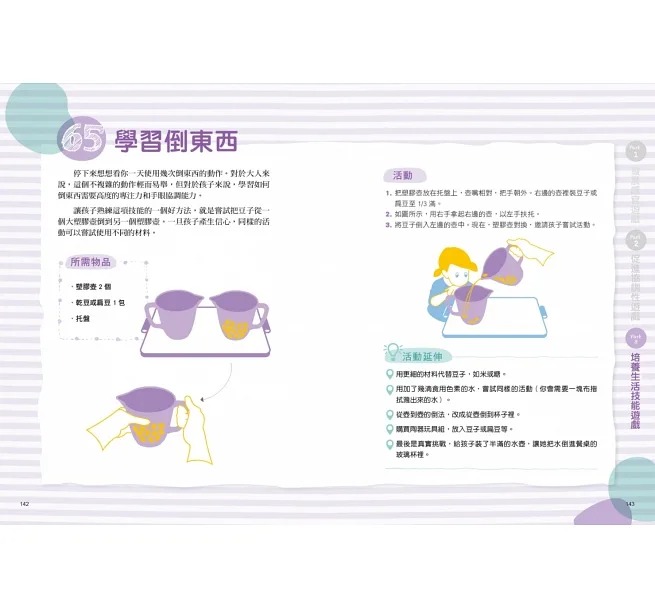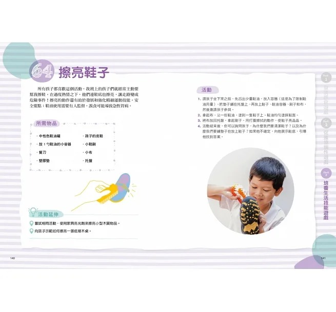 .附有執行指南與活動延伸建議,遇到困難時,也可以順利解決並依步驟進行,由簡單至困難,依孩子的能力調整難度。