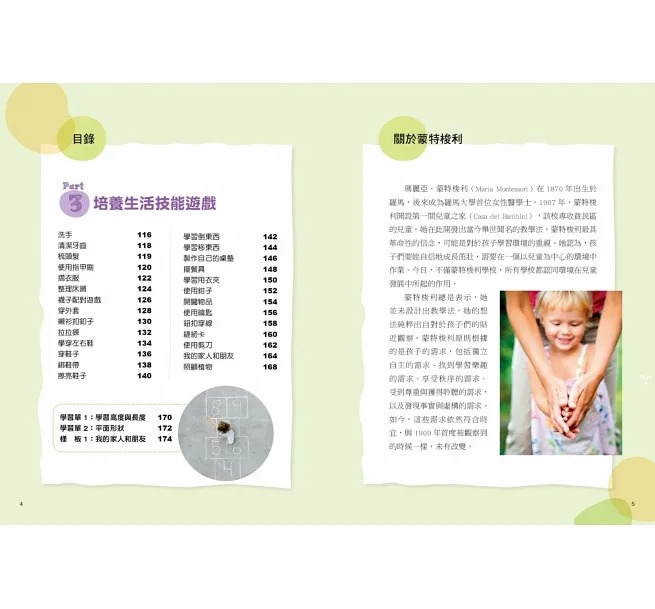 .有趣又實用的蒙特梭利遊戲,可幫助孩子擁有基本的生活技能,並對周遭的世界有更多認識。