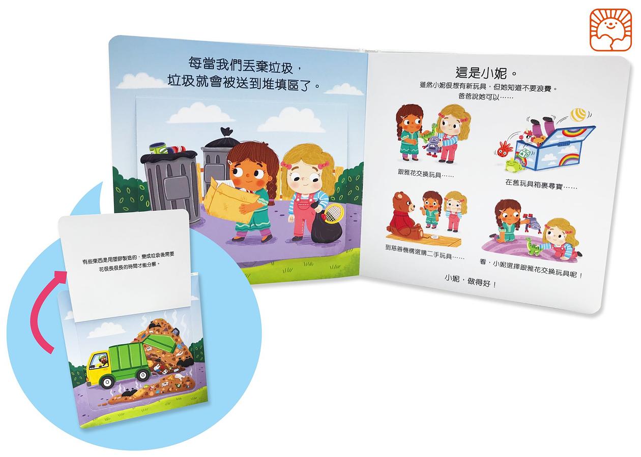 內容介紹: * 8個翻翻頁,加強幼兒的環保意識! * 幫助幼兒建立正確的價值觀! * 培養幼兒良好的生活態度! 建立環保的生活態度,是探索個人與大自然關係的起始! 本書透過8位小朋友的生活經驗, 讓幼兒翻一翻有關環保的情境,學習如何由日常生活做起, 讓自己發揮拯救地球的力量!