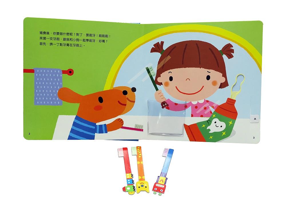 內容介紹: 《我愛刷牙》是一本很好玩的刷牙遊戲書,附有3支玩具牙刷,內藏不同的活動機關,讓孩子一邊看着可愛的插圖,一邊從遊戲中一步一步學習刷牙的正確方法。原來,刷牙也是好好玩的遊戲呢! 小朋友,快來跟書中的小孩和小狗一起學刷牙吧! 選一支牙刷,擠一點牙膏,上上下下,打圈圈,前前後後,刷刷刷......