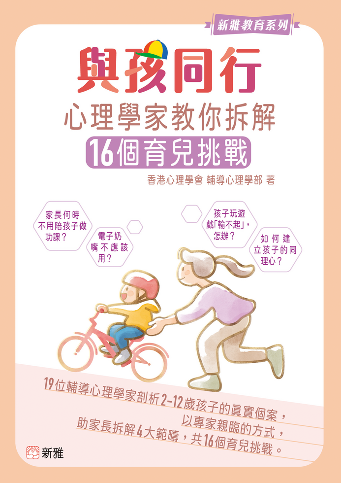 這本由香港心理學會輔導心理學部的輔導心理學家策劃、選題及撰寫的親職教養書,分為四個章節:學習支援篇、家庭成長篇、網絡世界篇及朋友社交篇。19位專家透過具體生活案例,例如:孩子質疑上學沒用、孩子玩遊戲「輸不起」而鬧情緒、孩子手機成癮怎麼辦等,助家長從正向對話中,增進親子關係,讓每個孩子都享有最快樂的教養!