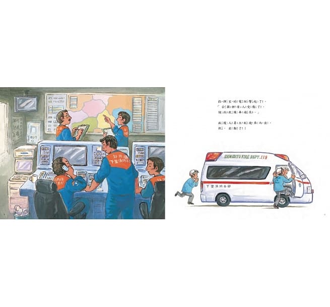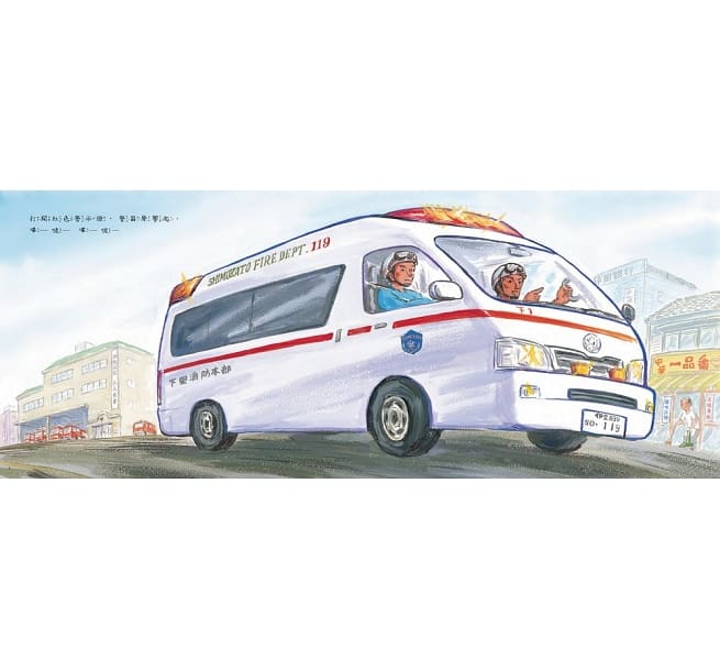 小鎮裡的消防車、救護車都停在消防署裡面。