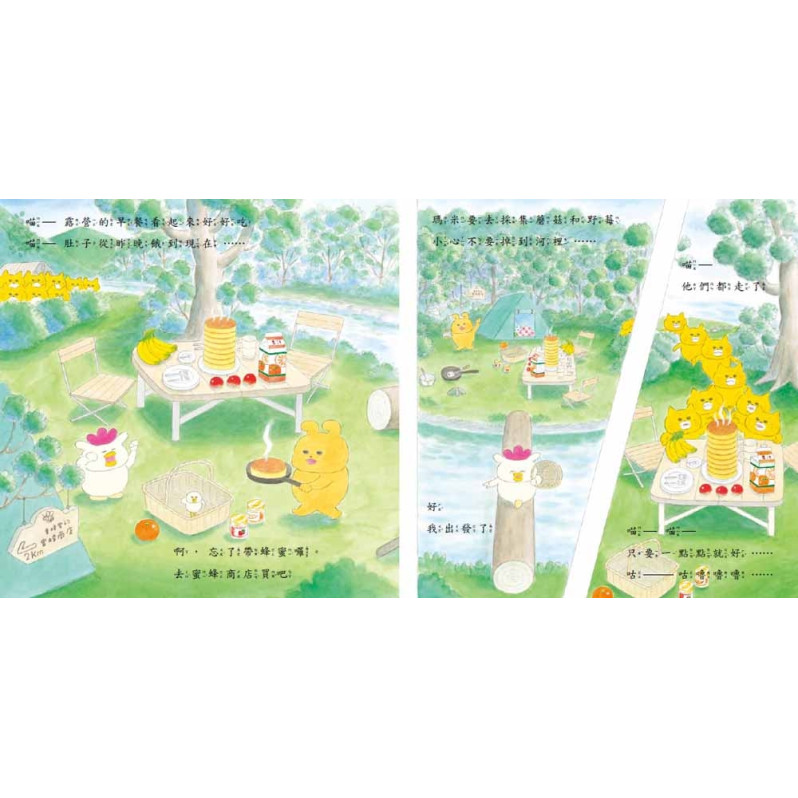 休假中的汪汪去露營,野貓軍團正在看著……他們好想吃鬆餅呀!