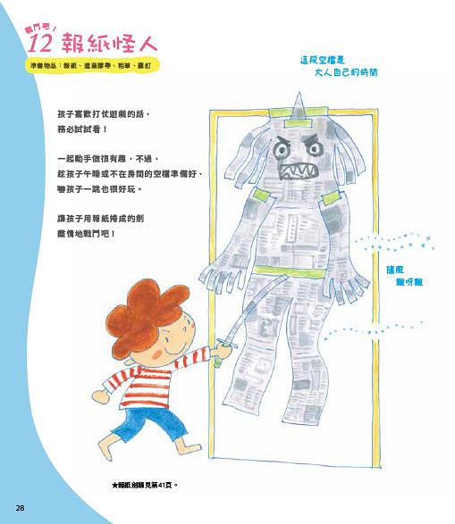 內容介紹: 下雨天、晚上、生病剛痊癒、幼兒園休園、學校放假… 遇到不方便外出的日子,或是無法跟朋友一起玩的時候… 和精力過剩的調皮男孩單獨待在家, 自己又有必須完成的工作或家事,真的是件非常辛苦的事。 這種時候,要不要試著不倚賴智慧型手機, 而是花點巧思、利用手邊的材料開發出不同於往常的遊戲呢? 這本書是寫給獨自在家照顧4~8歲孩童的爸爸媽媽和爺爺奶奶, 希望能提供靈感,讓兩人在家的獨處時光能過得更輕鬆、愉快。