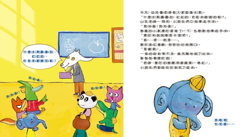 內容介紹: 義大利波隆那兒童書展 拉加茲獎作家 ★給幼兒的學習教育繪本★ -幫助孩子克服羞澀,學會適當地表達自己的想法- 【語言表達/自信心】 小象康尼非常害羞,心裡有許多想法都不敢說出口。 老師上課問他問題,他害羞地吞吞吐吐說不出來。 下課他想跟同學一起玩,卻不知道該怎麼表達才好。 坐娃娃車時,也因為沒及時說出自己的想法, 而失去和好朋友佩妮一起坐車回家的機會。 媽媽知道這些事後,給了康尼一個「勇氣束口袋」……